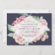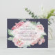 Nosso convite para o chá de damas de honra é uma bela escolha para convidar suas damas de honra a compartilhar uma tarde especial antes do grande dia. Design apresenta um fundo de flores cor-de-água rosa e verde em azul-da-meia-noite com uma camada de diamante branco puro que contém seus detalhes de chá das damas de honra em letras azuis de meia-noite.
