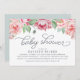 Escolha estes belos convites para o chá de bebê floral para celebrar a mamãe no estilo elegante. O design floral da Vintage apresenta peônias cor-de-água cor-de-rosa pincelada no topo com sotaques decorativos de tipografia e cinzas azuis de enfumaçado. Personalize com o texto desejado do convite para chás de fraldas usando os campos modelo.