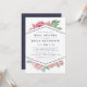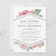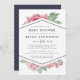 Os convites elegantes para chuveiros de bebês apresentam uma mistura chic de florais de aquarela vintage e elementos geométricos modernos em um fundo branco nítido. Um spray de flores cor-de-água rosa pincelada pia para fora do topo e do fundo de um elemento em forma de diamante central esboçado em azul da meia-noite, segurando seus detalhes de chá de fraldas em letras limpas e modernas. Cartões à volta do azul da meia-noite com um padrão sutil de diamante pontilhado. Um belo design contemporâneo em uma paleta de cor luxuosa de verde-azul, marinho e sábio.