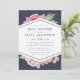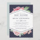 Os convites elegantes para chuveiros de bebês apresentam uma mistura chic de florais de aquarela vintage e elementos geométricos modernos em fundo azul-da-noite com um padrão sutil de diamante pontilhado. Um spray de flores cor-de-água rosa pincelada pia para fora do topo e do fundo de um elemento em forma de diamante central esboçado em azul da meia-noite, segurando seus detalhes de chá de fraldas em letras limpas e modernas. Cartões à volta do azul da meia-noite com um padrão sutil de diamante pontilhado. Um belo design contemporâneo em uma paleta de cor luxuosa de verde-azul, marinho e sábio.