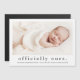 Anúncio de adoção de fotos Oficialmente nossa, com o tipo moderno e uma grande foto horizontal na frente. O magnético traseiro. Clique no botão editar para personalizar este design com suas fotos e detalhes.
