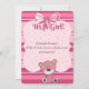 Um lindo ursinho de pelúcia rosa neste doce cartão de bebê. Use o espaço modelo para personalizar o espaço e criar um convite para o chá de fraldas ou simplesmente adicionar os detalhes de nascimento do seu novo pacote de alegria e anunciar sua chegada ao mundo!