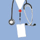 Anúncio de formatura de enfermeiro criativo para a escola de enfermagem ou formando de medicina com esfregões azuis.