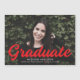 Imagem simples e de na moda, com a fotografia horizontal do formando, com "Formando" em um roteiro vermelho em negrito. Personalize o anúncio de graduação de fotos adicionando o nome do formando, o nome da escola e o ano de graduação.