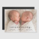 Um anúncio simples e mínimo de nascimento de fotos gêmeas com o tipo moderno e uma grande foto horizontal na frente. O dorso é magnético. Clique no botão editar para personalizar este design com suas fotos e detalhes.