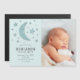 Cartão magnético de anúncio de nascimento bonito com suas fotos de bebê. O cartão apresenta as formas de lua e estrelas cheias de folha de falso de menta. Perfeito para uma foto de bebê dormindo. Personalize este produto adicionando os nomes do seu bebê e as estatísticas de nascimento.