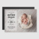 cartões com fotos de anúncio de nascimento magnético por bebê impresso por barato. Esta design de tendências apresenta a tipografia moderna personalizada com o nome do bebê e estatísticas de natalidade e uma fotografia de sangria de cheio. Use as ferramentas de design para personalizar fontes e cores de texto para criar um ímãs de anúncio de nascimento de bebê exclusivo para seu recém-nascido.
