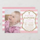 Convite de Batismo Glitter Rosa e Dourado com foto personalizada. Batismo Menina.Primeira Comunhão. Natal. Dedicação de Crianças. Listras brancas e rosa.