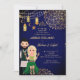 Mehndi Henna Convite ao casamento Islâmico com uma noiva e noiva loira, lanternas marroquinas, azul marinho e ouro