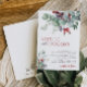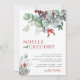 Um convite de casamento de na moda que apresenta gráficos de folhagem invernal em cores aquáticas em tons vermelhos e verdes e uma fonte moderna. Este convite elegante é fácil de editar e é perfeito para um casamento de inverno ou Natal. Par com qualquer coisa da coleção NOELLE para um olhar coeso.