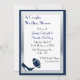 Convite para chás de casamento divertidos feito em azul e branco de marinho. Gráficos de um quadro de tom azul e prateado em volta de uma área de texto branca, com um salto azul escuro para saltar dando um marinho azul, cinza e futebol branco. As costas têm um salto alto azul, futebol azul e balões azuis escuros. Texto branco sobre o calçado e futebol tem os nomes da noiva e do noivo. O texto em preto, branco e azul está pronto para personalizar o seu grande evento. Um convite adorável para o casal.