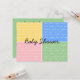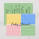 Quatro chás de fraldas de cor convidam a mãe. Muitas alegrias de bebês incluídas na frente do cartão.