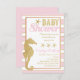 Chá de fraldas convite com cavalo marinho dourado e peixe-estrela com um toque de rosa. Perfeito para uma doce menina.