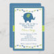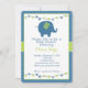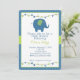 Perfeito para um bebê, este convite tem cores azuis e verdes com elefante bebê giro.