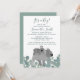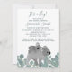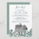 Um convite para chá de fraldas de menino bonito, com um bebê Koala cavalgando nas mães andando pelas folhas de eucalipto.