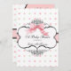 Este Convite para Chá de fraldas apresenta elegantes espirais em prato francês, pontos cor-de-rosa e verdes no fundo e um belo arco cor-de-rosa pintado à mão. Tudo feito de arte original por Audrey Jeanne Roberts. O resultado é um belamente contemporâneo conjunto de Bebês. No verso há o mesmo padrão de pontos e um suporte revelando um lugar para a foto do seu bebê. Pode adicionar facilmente a sua própria imagem ou alterar a mensagem. VOCÊ TAMBÉM PODERIA GOSTAR DE: