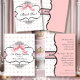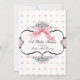 Este Convite para Chá de fraldas apresenta elegantes espirais em prato francês, pontos cor-de-rosa e verdes no fundo, uma fita recheada e um belo arco rosa pintado à mão. Tudo feito de arte original por Audrey Jeanne Roberts. O resultado é um belamente contemporâneo conjunto de Bebês. No verso há o mesmo padrão de pontos e um suporte revelando um lugar para a foto do seu bebê. Pode adicionar facilmente a sua própria imagem ou alterar a mensagem. VOCÊ TAMBÉM PODERIA GOSTAR DE: