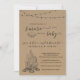 Convite para Chás de fraldas S'mores - Mais puxada para a mão, luzes de cordas e fogueira em um fundo kraft que mostra sua maravilhosa celebração rústica.