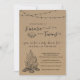 S'mores Twins Convite para Chá de fraldas - "Tudo é mais divertido com gêmeos" - Mais desenhado à mão, luzes de cordas e fogueiras em um fundo kraft que retrata sua maravilhosa celebração rústica.