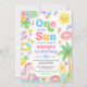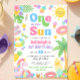 ☀️ 🌸 Celebre seu brilho de sol com este adorável convite para o primeiro aniversario do Sol! Apresentando um trabalho de arte brilhante de aquarela — sol sorridente, flutuador de piscina unicórnio, doces doces, flutuadores de piscina de aquarela, flores tropicais e vibrações ensolaradas — este convite de aniversário de verão é perfeito para um dia divertido no sol! 🌈 🦄 Perfeito para: ・ Festas de Piscina ・ aniversários de praia ・ Festas de verão de quintal ・ primeiros aniversarios de verão