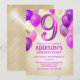 Convite aos balões cor-de-rosa de 9.o aniversário