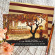 Um convite apenas para recepção de casamento de outono, pós ou após o casamento, apresentando uma árvore de outono colorida com lanternas festivas com vista para um lago.