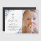 Convite Aquarela Azul Desbotado Floral Foto de Bebê Batism