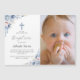 Convite Magnético para Foto de Bebê Floral Azul Poeira Elegante Batismo