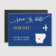 Você escolheu um lugar especial para o seu casamento. Agora é hora de celebrá-lo com este cartão de imã salve a data keepsasasasasasasasasak, com um mapa da silhueta e um pequeno avião indo para o seu destino. Para mover o coração para o lugar do seu casamento, clique em personalizar e, em seguida, "personalizar ainda mais".