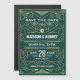 Crie seu próprio design ao estilo Deco de Arte, Excelente inspirado em Gatsby, com ornamentos abstrato geométricos e padrão em ouro com fundo verde-escuro. Um elegante, elegante, neutro em relação a gêneros, design perfeito para a temporada inteira para casais discernentes que querem algo diferente dos habituais suites de papel de casamento feminina, floral e pastel. Excelente também para casais retrorreflectores que apreciam o mundo artístico infuso de jazz nos anos 20. Verifique a coleção correspondente para ver a suíte inteira.