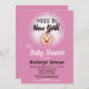 Este engraçado convite para o chá de fraldas mostra um lindo rosto branco de bebê que diz "Made In New York" em um fundo rosa. A imagem está na frente e atrás do convite.