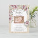 As flores de Mauve e as folhas soam como um fundo natural de madeira. Um quadro simples ocupa um espaço para a foto do seu filho. Visite nossa loja irmã Pixieprints.com para todas as suas necessidades de convite.