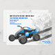 Um convite esportivo com quatro rodas azuis. Um convite perfeito para seu entusiasta do ATV.O cartão é fácil de personalizar com seu texto, fonte, cor da fonte e escolha de seis tipos de papel.