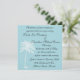 Nosso convite azul da fuga da praia apresentado como parte de nossa coleção do destino mostra suas elegante & beleza no design simples de uma palmeira branca contrastada contra um fundo azul calmo. Grande escolha a coordenar com um destino, a praia ou alguma cerimónia de casamento exterior. O modelo feito sob encomenda do fraseio pode ser usado para introduzir todos seus detalhes da cerimónia. O estilo e a cor de pia batismal podem igualmente ser personalizados selecionando "personalizam-na" característica. Mostrado aqui com tipo de papel de linho, você pode igualmente escolher de seis tipos de papel diferentes selecionando 'característica da opção dos convites a". Este convite mede 5,25 x 5,25, mas está igualmente disponível em 5 x em 7