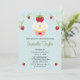 Estes costume bonito e saboroso e convites personalizados da foto do aniversário do cupcake da morango dos miúdos e das crianças são perfeitos para uma festa de aniversário temático da morango. Um cupcake amarelo com um coração vermelho e um envoltório cor-de-rosa, o chantiliy, as morangos, as videiras verdes, as flores e o fundo azul das bolinhas são doces e bonito. Aperfeiçoe para a menina que gira toda a idade - um, dois, três, quatro, cinco, seis, sete, oito ou nove anos velho. Excelente para uma ?a, ?a, ó, 4o, 5a, 6a, 7a, 8a ou 9a festa de aniversário. © Chrissy H. Estúdio dos trabalhos de arte, LLC. Todos os direitos reservados.