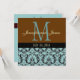 Convite azul do casamento de Brown do monograma do