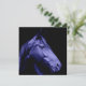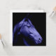 Design azul do cavalo mostrado em silhueta em um convite.