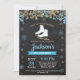 Convite azul do skate da festa de aniversário do patinagem no gelo. Aniversário do menino. Azul e floco de neve Dourado do brilho. Feriado do Natal do inverno. Fundo do quadro. Preto e branco. ø ò ó 4o 5o 6o 7o 8o 9o 10o 11o 12o 13o 14o 15a, alguma idade. Para uma personalização mais adicional, clique por favor "personalizam-no" botão e usam-nos nossa ferramenta de design para alterar este modelo.