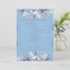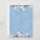 Este elegante design floral azul-claro tem flores brancas e azuis. Este design elegante é uma opção fabulosa para muitos estilos de eventos, do clássico ao do boho. Você pode personalizar esta design com seus detalhes de casamento.