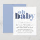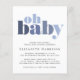 O convite para o chá de um bebê minimo e amigável no orçamento apresenta "oh baby" em ousada tipografia moderna em tons de azul. Personalize facilmente os detalhes do chá virtual.