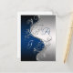 Este belo cartão tem um gradiente prateado de um lado e um gradiente azul do outro. No meio, há um adorno ornamental FAUX. Personalize com suas próprias informações. Se precisar de ajuda ou quiser este design para seus convites de casamento, por favor, envie-me um e-mail para shutterbug600@yahoo.com. Se desejar mover o texto ou alterar o tamanho, a fonte ou a cor, clique em Personalizar.
