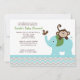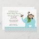 Macaco adorável e convite de elefante azul para o seu próximo chá de fraldas ou festa de aniversário. Itens correspondentes estão disponíveis!