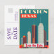 Defina um tom sofisticado para o seu casamento com este convite de Houston, apresentando arquitetura moderna elegante e uma paleta de cores azul turquesa. Esta arte turística de alta qualidade combina vibrações de desejo de viajar com um estilo atemporal para anunciar o seu grande dia.