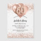 Para um elegante aniversário de 60 anos. Um fundo branco na moda. Decorado com rosa dourado, cintilação falsa rosa, faíscas e balões. Personalize e adicione um nome e detalhes da festa. O nome é escrito com um script de estilo manuscrito, número 60 com fontes de estilo de balão.