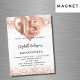 Para uma elegante Quinceañera, 15. Um fundo branco na moda. Decorado com rosa dourado, cintilação falsa rosa, faíscas e balões. Personalize e adicione um nome e detalhes da festa. O nome é escrito com um script de estilo manuscrito, número 15 com fontes de estilo de balão.