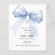 Um fundo branco, decorado com um arco grande azul claro e uma cruz ouro. Personalize e adicione o nome e os detalhes. 1 folha = 1 convite impresso de borda a borda.