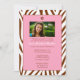 Convide a família e os amigos para o Bat Mitzvah da sua filha com este convite personalizável, rosa moderno e zebra esbranquiçada, Bat Mitzvah. Personalize com uma foto da sua filha e os detalhes do Bat Mitzvah.