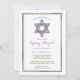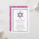 Este convite moderno e moderno Bat Mitzvah apresenta uma estrela azul roxa, rosa e marinho de David com sotaques dourados e uma fronteira correspondente. O texto e a cor do plano de fundo podem ser personalizados para nosso gosto pelo evento especial de sua filha.