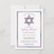 Este convite moderno e moderno Bat Mitzvah apresenta uma estrela azul roxa, rosa e marinho de David com sotaques dourados e uma fronteira correspondente. O texto e a cor do plano de fundo podem ser personalizados para nosso gosto pelo evento especial de sua filha.