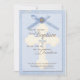 Convite batismo com cobertura faux velum e fita faux sobre fundo azul, e o verso bíblia dos esianos4:5-6. Projetado por Rycky Creations com trabalho de arte da Pixelscrapper.